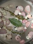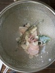 - Add the half and half, stir, cook for 10 minutes to become infused with the flavor of the wine, herbs, and aromatics (2nd row left photo).