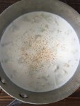 - Add the white cauliflower florets (2nd row right photo), then the grated nutmeg (3rd row left photo), simmer for 15 minutes.